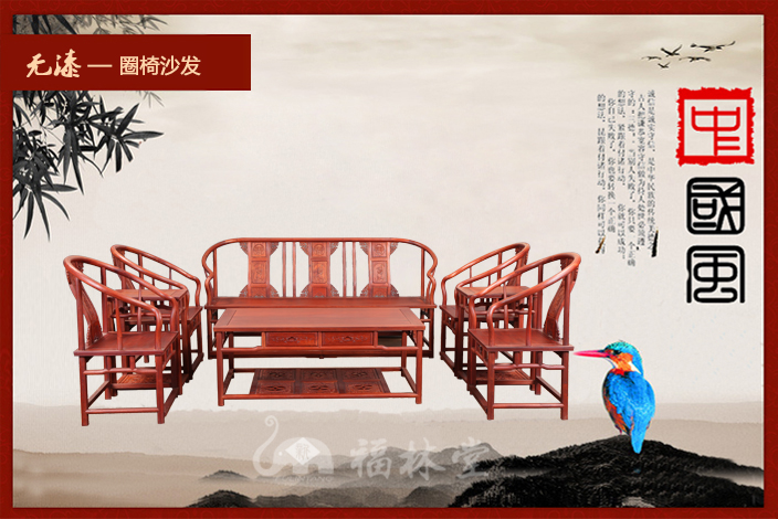 圈椅,因椅圈恰似羅圈,民間又稱“羅圈椅”或“圓椅”,圈椅的造型上圓下方,外圓內(nèi)方,這暗和了中國傳統(tǒng)文化中的乾坤之說,乾為天為圓,坤為地為方,而外圓內(nèi)方則是中國傳統(tǒng)文化中所崇尚的一種品德,雖在處事上有所圓滑但卻內(nèi)在有所堅(jiān)持。它最明顯的特征則是在圈背上連結(jié)著扶手,從高到低一順而下,座靠時(shí)可使人的臂膀都倚著圈形的扶手,感到十分舒適,頗受人們喜愛!